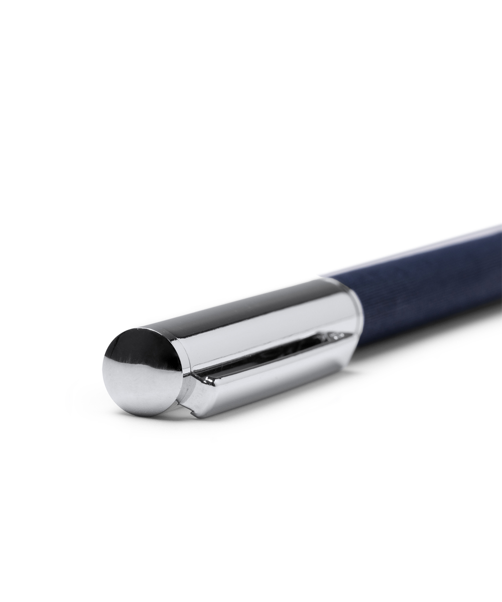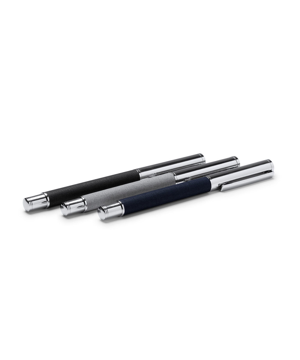 Στυλό διαρκείας με μεταλλικό σώμα σε συνδυασμό με ανακυκλωμένο πολυεστέρα RPET. Μπλε μελάνι.